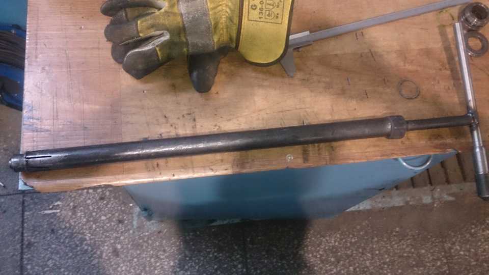 Итак, рейка демонтирована, разобрана, дефектована. Настала очередь сборки. Да, кстати, для демонтажа внутреннего сальника пришлось изготовить вот такой съемник.