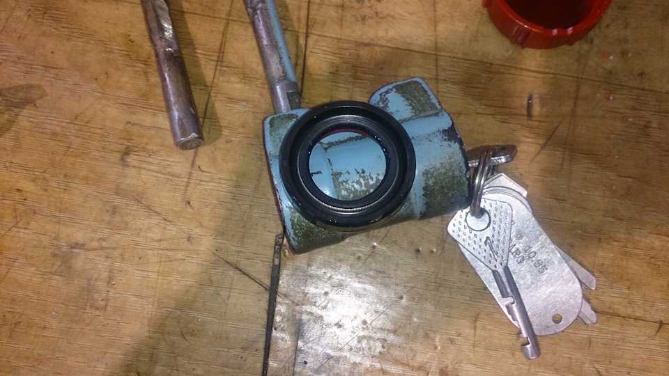 Дальше запрессовываем наружный сальник в корпус, к сожалению, забыл сделать фото. Все смазываем, устанавливаем новый вал, следом наружный сальник и упорную шайбу со стопорным кольцом.