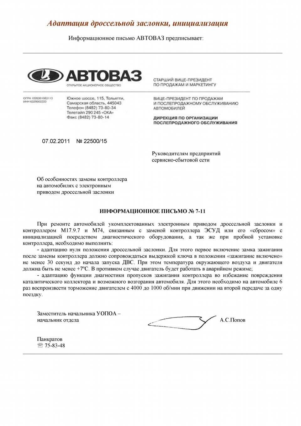 Так же наткнулся на интересное информационное письмо Автоваза №7-11: