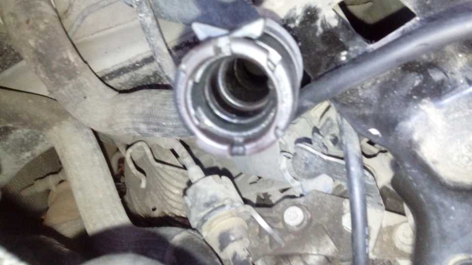 - Пропихиваем пластиковую канистру между радиатором и коробкой передач.