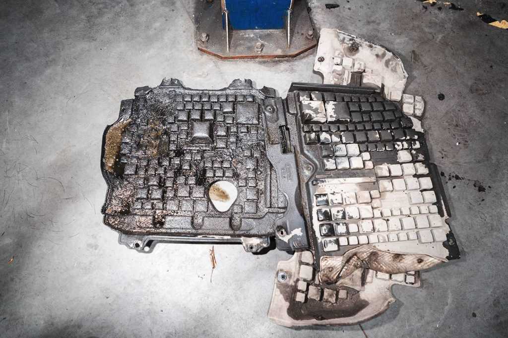 Защита в толстом слое грязи. Внешние отложения отмыть не проблема, но масло уже проникло вглубь структуры, а она явно не маслобензостойкая.