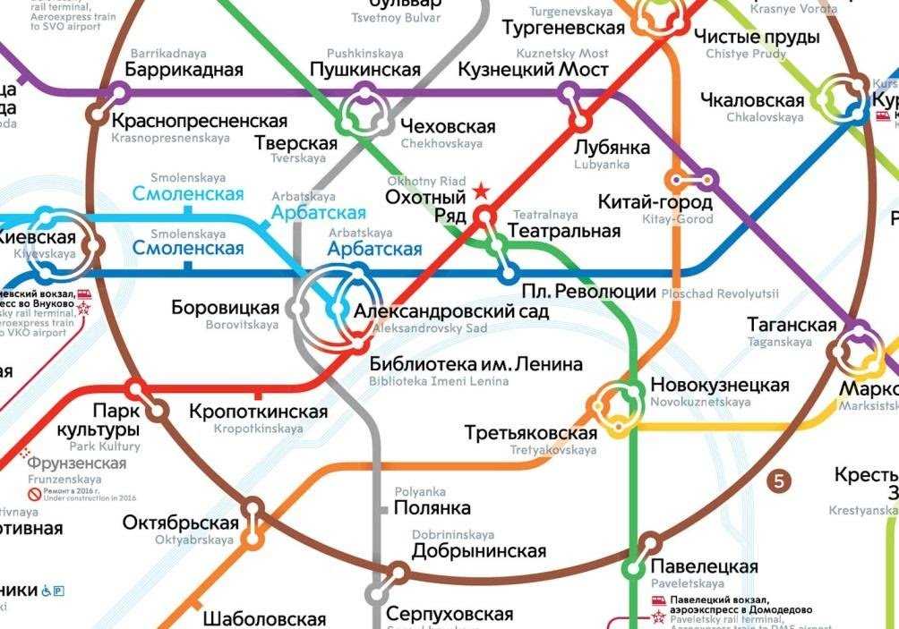 Использование градиентов в оформлении переходов на схеме Московского метрополитена. Изображение: Студия Артемия Лебедева
