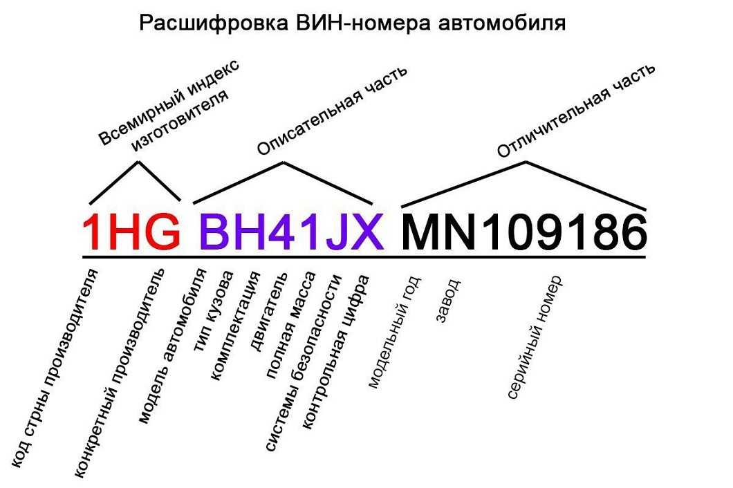 Этот код содержит в себе 17 знаков (ими могут быть как цифры, так и буквы), каждые из которых отвечают за определенную важную информацию.
