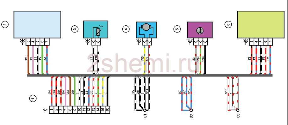 Схема электрических соединений жгута проводов отопителя PRIORA 21723