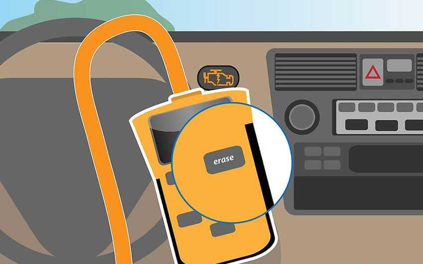 Удаляем код ошибки. Нажимаем кнопку «ERASE» (Стереть) на сканере. Индикатор «Check Engine» выключится, если все коды ошибок будут очищены. Некоторые инструменты сканирования имеют много опций, таких как стоп-кадр, который фиксирует показания датчика. При удалении кодов эти показания также удаляться. Примечание: в некоторых сканерах опция очистки кодов может быть автоматическая и кнопку «CLEAR» или «YES» вместо кнопки «ERASE». Не забудьте включить зажигание перед удалением кодов.