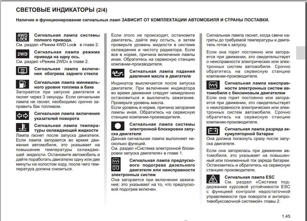 Решается данная проблема простой заменой этих датчиков. Особое внимание следует обратить на индикатор в виде двигателя, его еще называют чек, он отвечает за систему двигателя, во время пуска силового агрегата он должен загораться и сразу гаснуть, если он продолжает гореть, то это предупреждает что имеются неисправности в системе двигателя. Если данный индикатор начинает мигать это может быть связанно с нестабильной подачей искры, поэтому желательно снизить обороты. Как видите панель достаточно информативная, и если знать за что отвечает каждый элемент, то можно довольно быстро определить причину неисправности, и чтобы понимать обозначение, ниже представлен список значков с описанием: