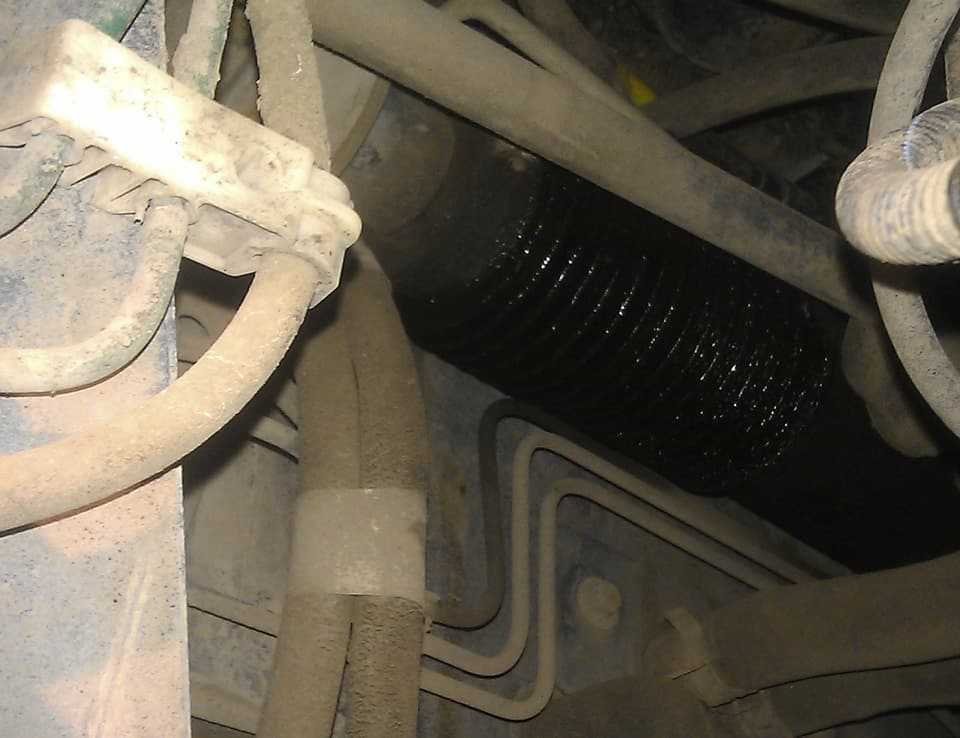 - Откручиваем возвратный шланг жидкости ГУР, подставялем снизу резервуар для сбора рабочей жидкости. Найти его можно на леворульных машинах за подкрылком справа, на праворульных — слева