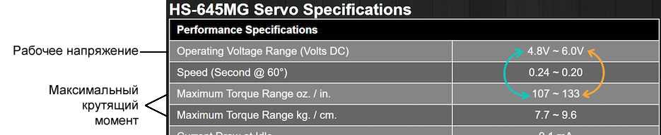 Вторым фактором, влияющим на максимальный крутящий момент двигателя, является максимальное напряжение, на которое рассчитан двигатель. Если вы посмотрите на страницу характеристик любого сервопривода, вы найдете разные значения крутящего момента для разных напряжений. Более высокие напряжения дают двигателю большую мощность для обеспечения более высокого крутящего момента. Тем не менее, двигатель и его схема управления могут принимать ограниченное напряжение из-за возможности перегрева и сгорания. Максимальное напряжение, которое двигатель может принять без сбоев, влияет на величину его максимального крутящего момента.