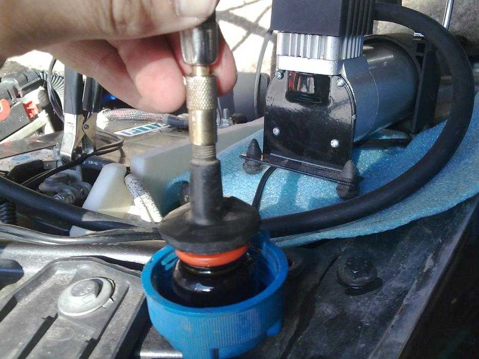 Вот проверил свою крышку при помощи автокомпрессора таким образом: