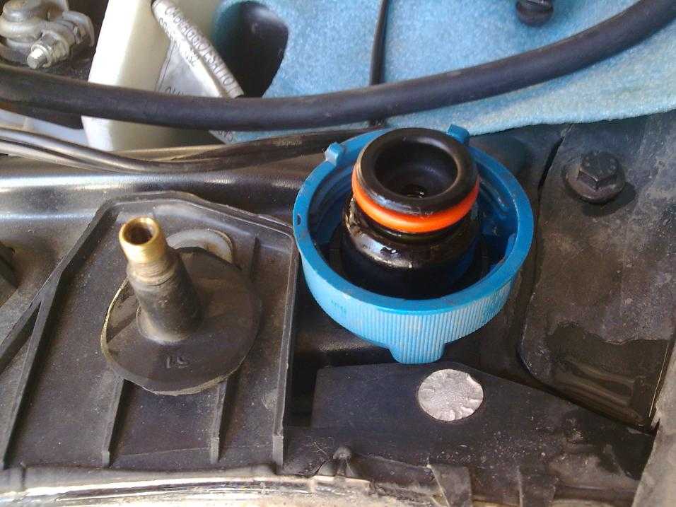 - Откручиваем крышку расширительного бачка. Конечно же, на холодный двигатель, и медленно, спуская воздух.