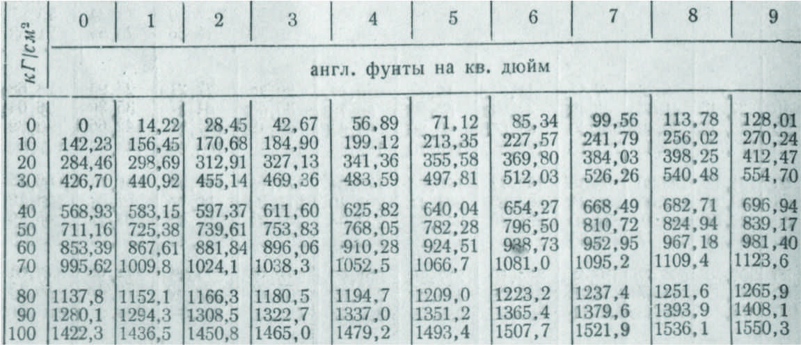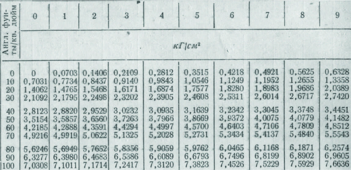 Перевод английских фунтов/кв. дюймов в КГ/см2
