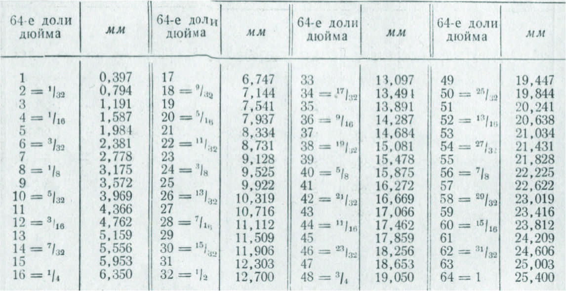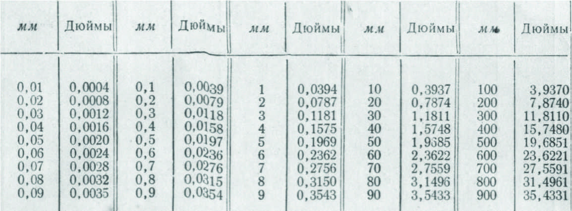 Перевод дюймов в миллиметры Через 1/16 дюйма; 1 дюйм = 25,400 мм; 1 мм = 0,03937 дюйма