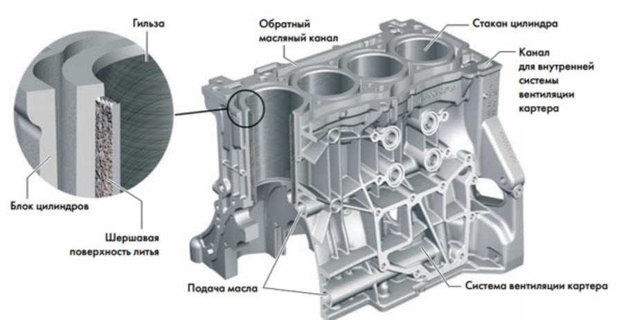 Существуют разные версии блоков, в том числе и более прочные чугунные, но в последнее время используются алюминиевые блоки с запрессованными чугунными гильзами.